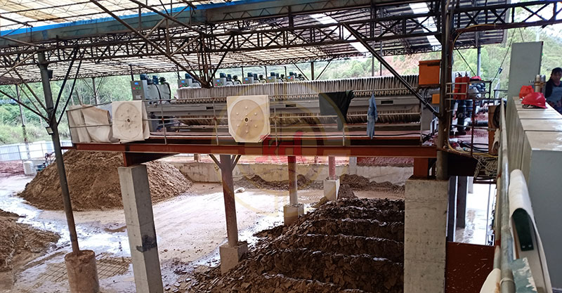 高干度,高产能,废渣可压榨至含水率30%以下,低至15%,比普通厢式压滤机低10个点,比带式压滤机低15个点,配置我司两台XMYD1500-130PC-400厢式高压压滤机可满足1000m3/d洗砂生产线的废渣脱水需求。
